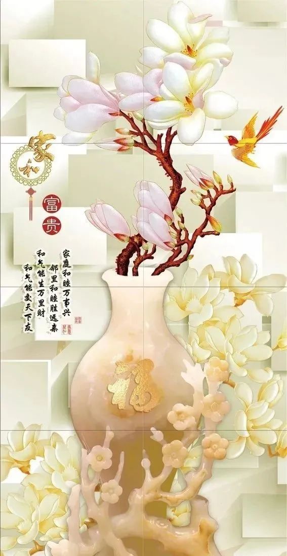 无论过去还是现在,人常以玉为装饰,以求与玉相通,濡染上玉的性灵;可是,玉的价格过于昂贵,绝大数人小物件尚可承受,房屋装饰品却难以企及,妙彩金饰画针对这一情况,将专利技术与现代工艺相结合,推出了仿玉背景墙系列,让房屋也能与玉相通,让家充满“灵气”。