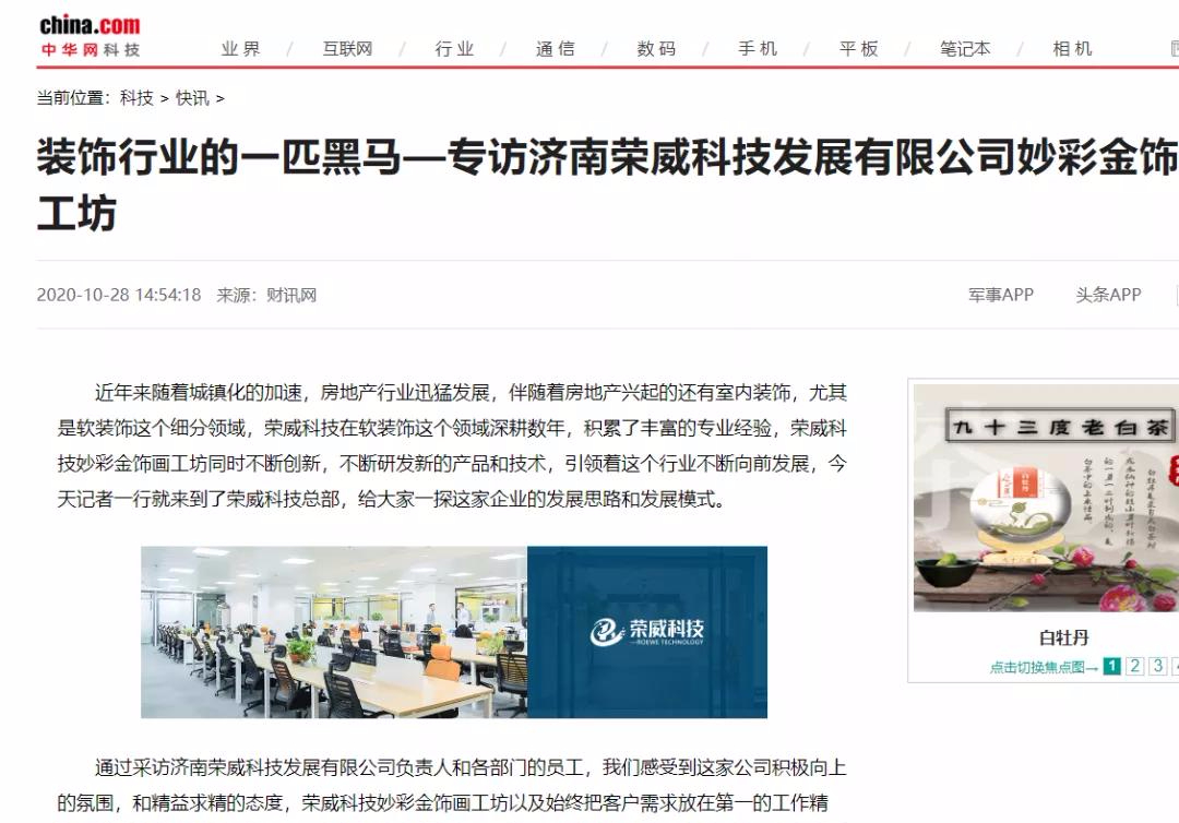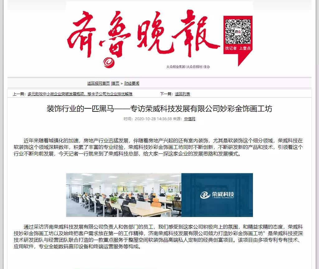 妙彩金饰画项目自问世以来,以先进的工艺技术、专业的运营支持、完善的售后服务帮助了成千上万的创业者走上了创业致富的成功道路,获得了无数客户、消费者、行业的一致认同与好评;10月27日,山东权威媒体《齐鲁晚报》联合《中华网》、《腾讯网》等多家知名媒体对妙彩金饰画项目进行特约专访,并于28日同步登出了妙彩金饰画的专访报道,在文章中实事求是,对妙彩金饰画项目进行了全面的剖析后,对其给予了肯定与认可。