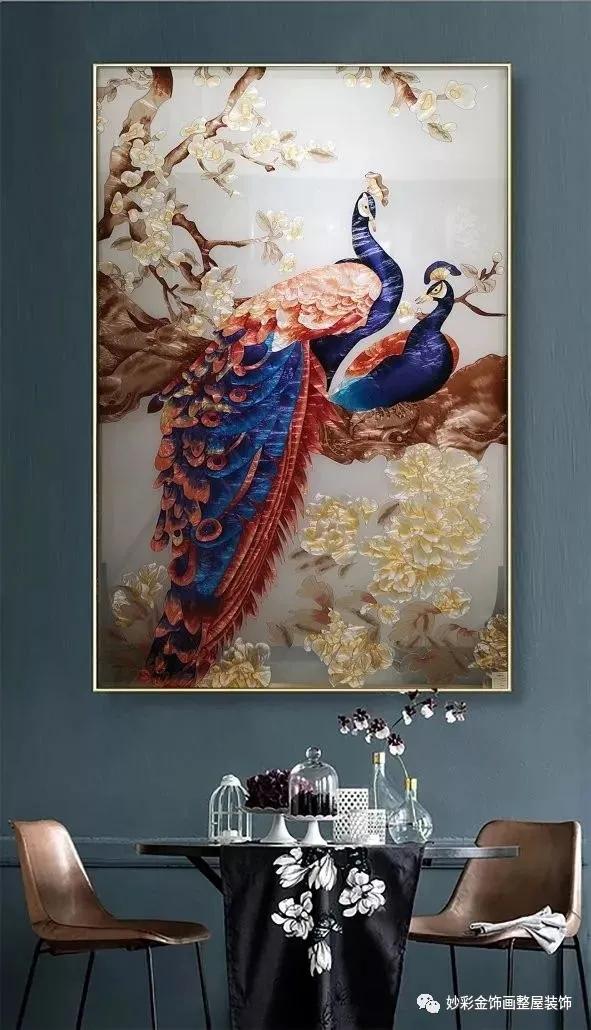 妙彩金饰画采用了济南荣威科技先进的数码融金融彩技术,可以在木板、玻璃、瓷砖等不同的普通板材上高清还原图像,结合不同的工艺效果,可以制作出晶瓷画、金饰画、珐琅画、烁金画、实物立体画、玉石画、羽毛画等市面上炙手可热的装饰品;同时,妙彩金饰画项目业务范围广阔覆盖家装、工装、商业展示等行业,吊顶地台、背景墙、推拉门、装饰画......一套设备技术,全屋装饰;更具有个性定制功能,轻松满足不同消费者的装饰要求。