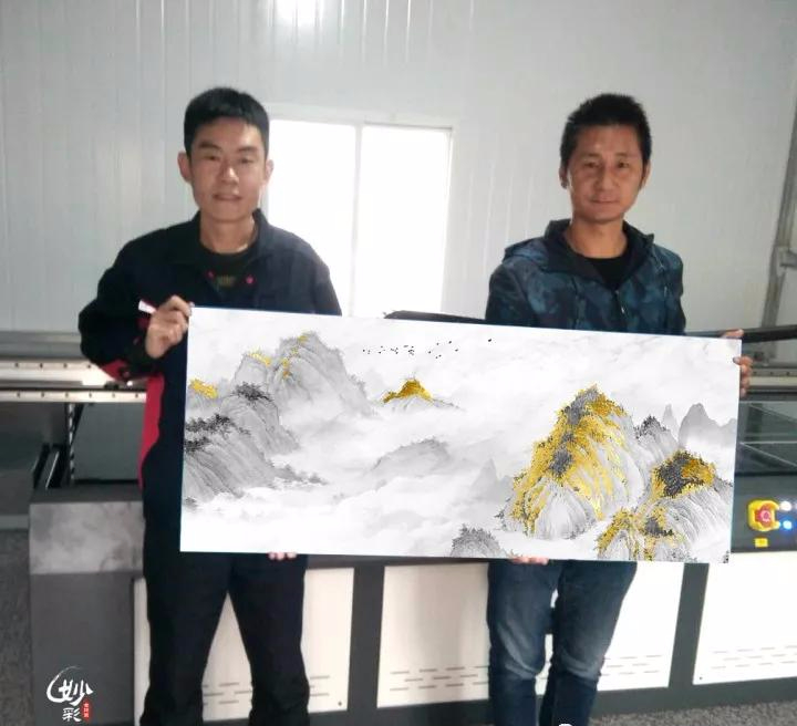妙彩金饰画项目是由济南荣威科技独自研发打造而成,拥有十余种专利技术与上百种工艺效果,项目采取了整项目输出模式,设备、技术、运营、售后......一步到位,让创业者高起点创业;其中妙彩金饰画系列设备现拥有数十项国家知识产权,包括多项专利、商标、ISO认证体系等;该设备能够结合不同的技术工艺在玻璃、瓷砖、亚克力板等不同的材料上制作出百余种效果作品,囊括了装饰画、背景墙、地台、吊顶、推拉门等绝大数家装工装产品,操作便捷、低耗高效、智能化程度高,生产周期短、全彩成像一次完成、无色差,不管是渐变色还是大幅面拼接、不管是小件定制还是大批量生产,均能达到照片级成像效果,快速产出成品。