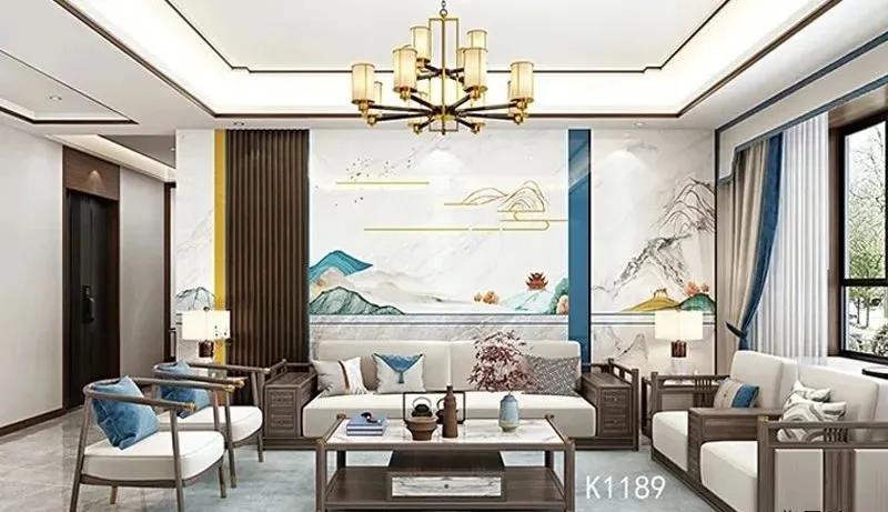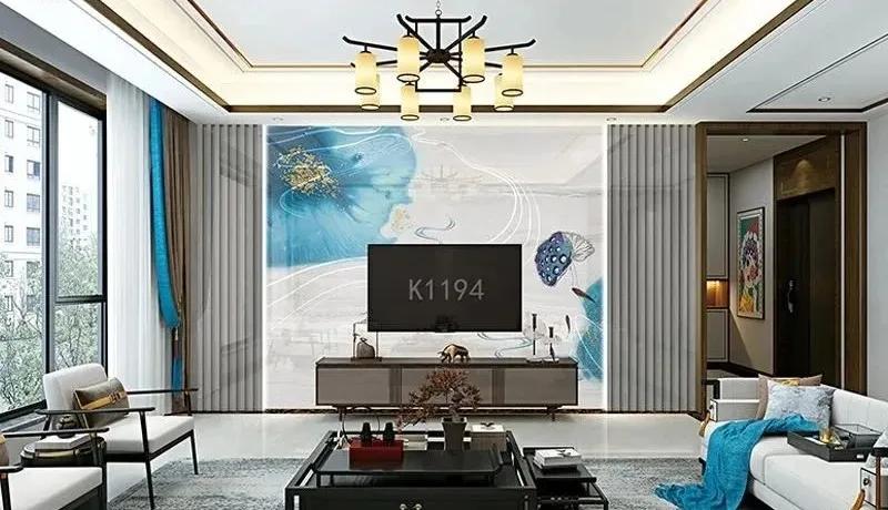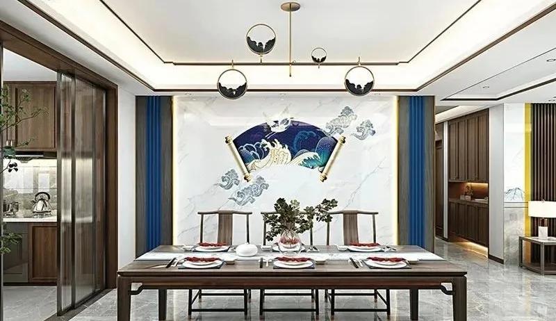 这款妙彩“吉祥如意”背景墙,是在妙彩微晶石背景墙的基础上,利用妙彩融金融彩专利技术,赋予墙面高清细腻的中国元素图案,整套空间是以温馨的蓝调搭配具有国潮标志性的元素,再配上传统性木纹格栅,使整套空间感觉相辅相成,美轮美奂,寓意吉祥又潮流,带给家人们无尽美好祝愿。