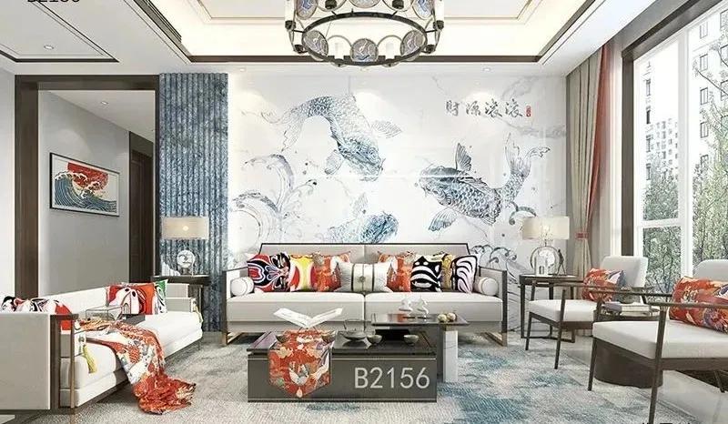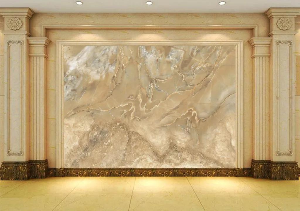 妙彩背景墙:妙彩背景墙可以通过专利技术,在瓷砖、微晶石、玻璃等材料上制作出仿大理石、仿玉石等工艺效果,具有大理石背景墙全部优点,且通过特殊处理,去除了当中的辐射物质,使用更加安全,价格也相比大理石更加便宜。