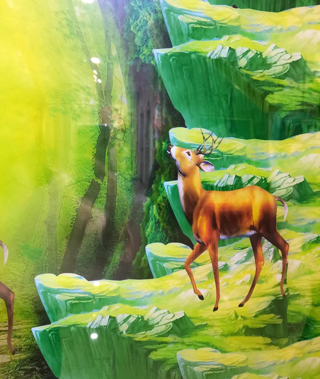 森林有着幽静、神秘的感觉,绿色使人觉得生机盎然,身处丛林之中,细听鸟语轻嗅花香,能够让人心情得到平复,从而达到心静自然凉的状态;这幅以森林为主的装饰画,采用了妙彩魔幻多层画技术工艺,画面细腻高清,3D立体,且不同分层的画面相互呼应,随着视角的移动而变化,使人仿佛置身其中,清凉之感迎面而来。