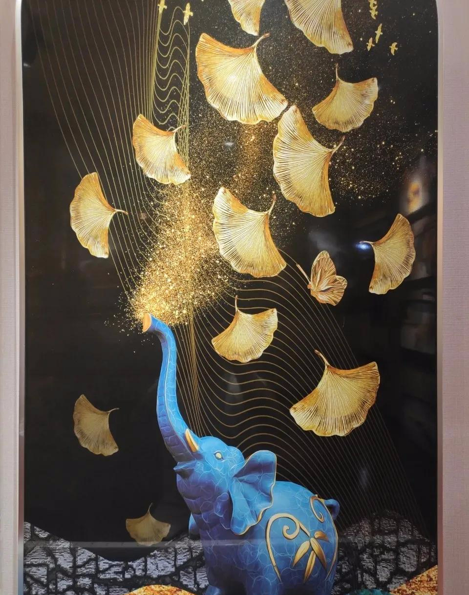 一块块廉价的板材原料,通过妙彩金饰画先进的融金融彩技术,可以将不同的图案融入其中,再配合妙彩金饰画先进专利设备,可以生产出金饰、晶瓷、鎏金、浮雕、闪金闪银、立体动感等市场上大受欢迎的装饰画艺术品,产品画面清晰、色彩饱满、质感极强、流光溢彩,广泛适用于各类装饰空间,商业价值、艺术价值有了质的飞跃,实现了丑小鸭变白天鹅的华丽变身。