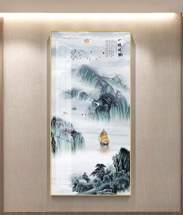 这幅一帆风顺玄关装饰画采用了妙彩空间变化立体画技术工艺,画中的山川、河流、船只会随着视角的移动而发生变化,打破传统展现形式,颠覆观看方式,最大程度上给人多维立体的震撼视觉效果,同时把对家的美好祝愿用画诠释出来,挂在墙上特别有寓意。