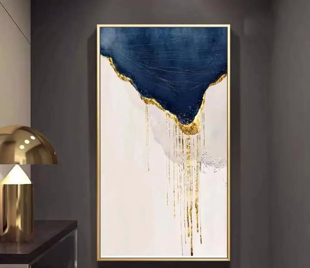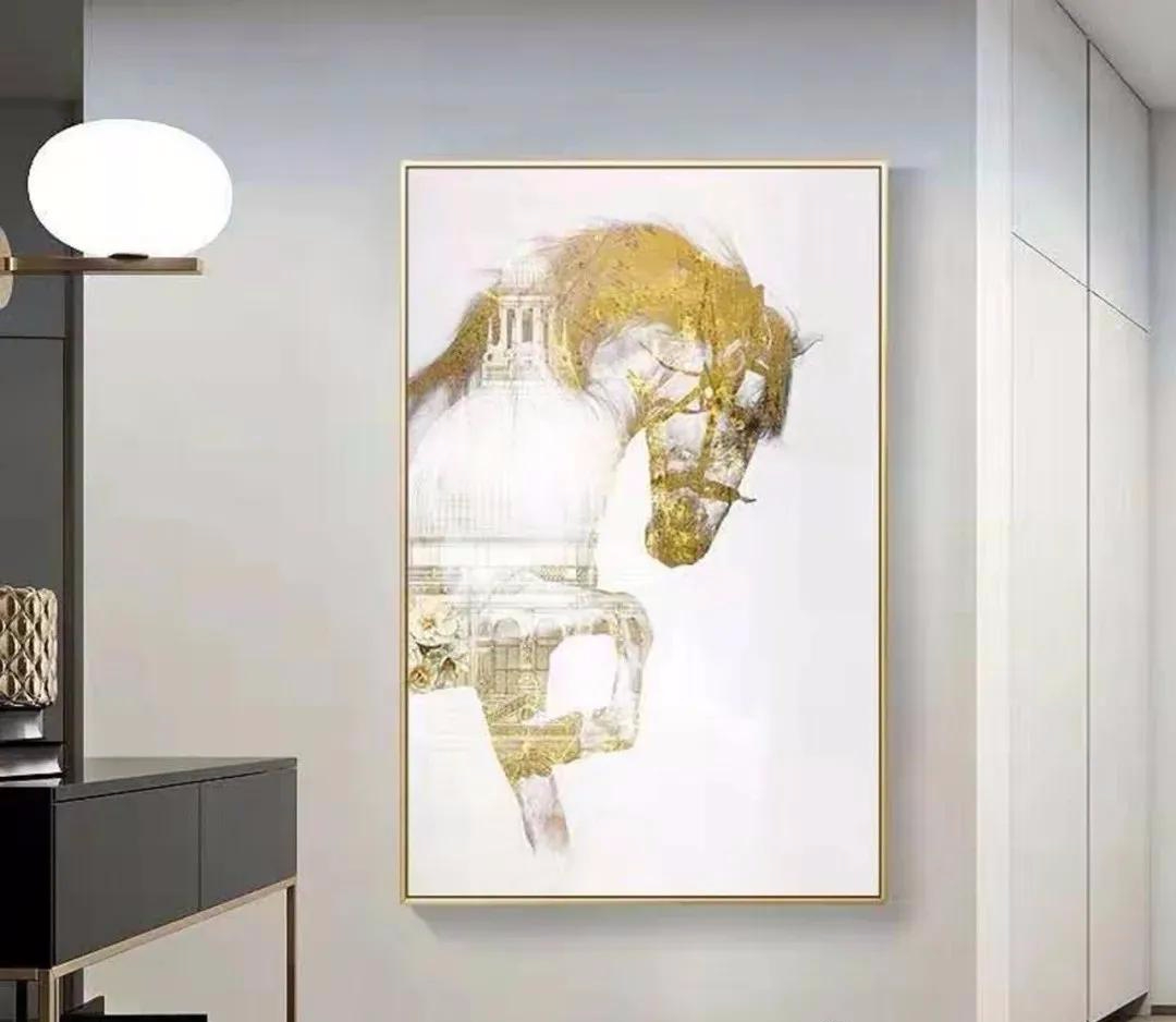 这幅现代抽象玄关画,采用了妙彩晶瓷鎏金技术工艺,作品从多个角度塑造层次的美感,低调不张扬,极富质感的鎏金与璀璨的晶瓷工艺相互结合,表面晶莹剔透、质感十足;金色的线条缓缓淌下,为其添加一份贵雅、尊贵,更显华丽。
