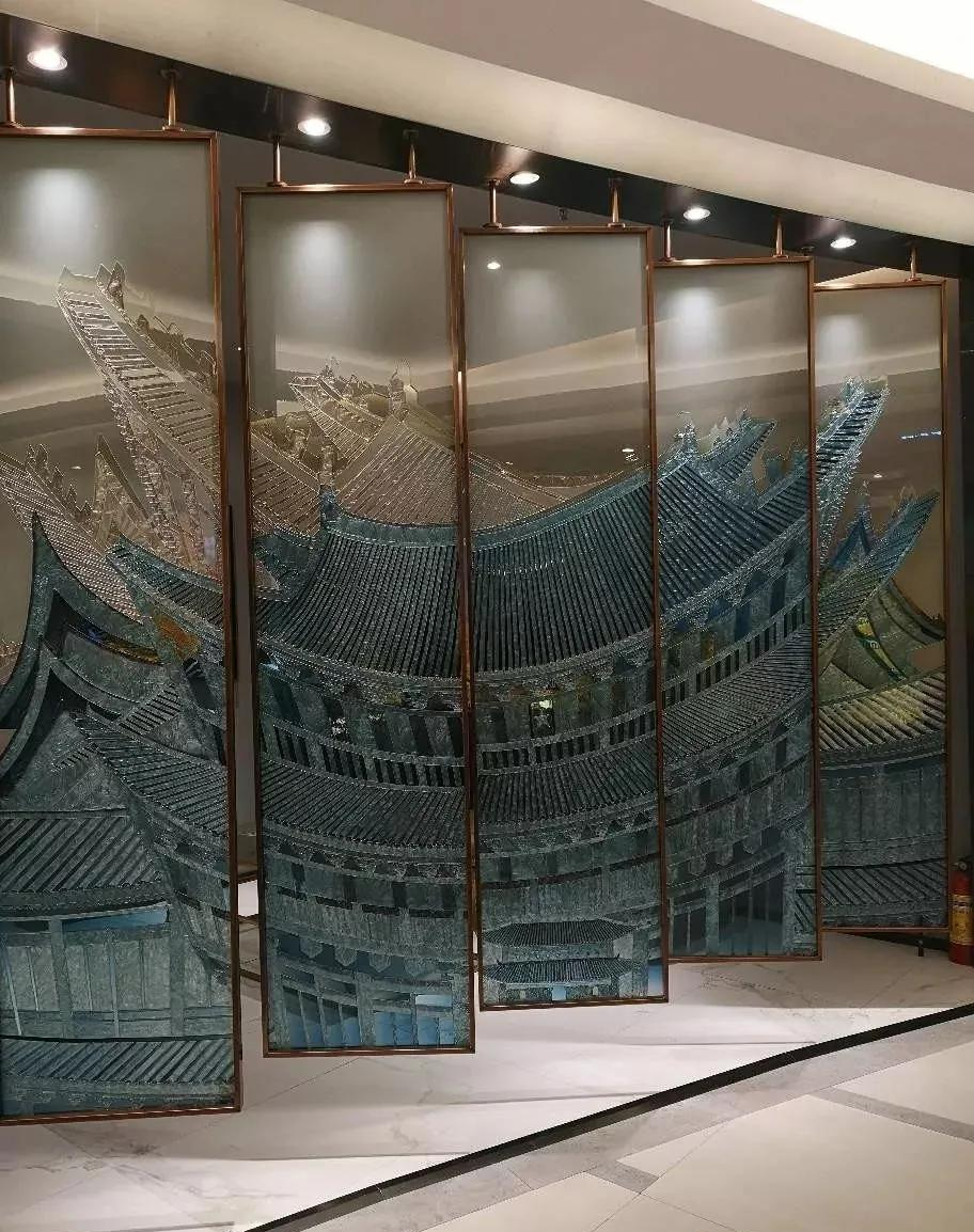 妙彩仿玉石屏风将仿玉石工艺与屏风工艺相结合,外表晶莹剔透、白璧无瑕,在巧妙地创造出丰富的空间层次之余,更营造出高贵浪漫的空间气质。屏风能随时开合、移动、折叠。比墙更灵活、通透,比帘子郑重静美。